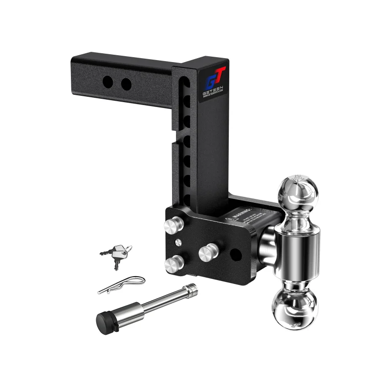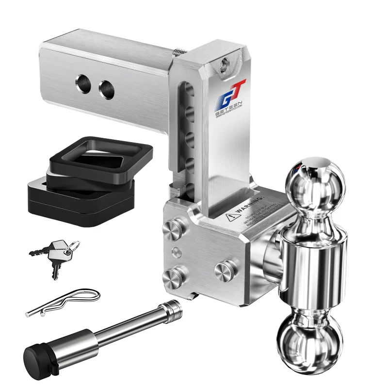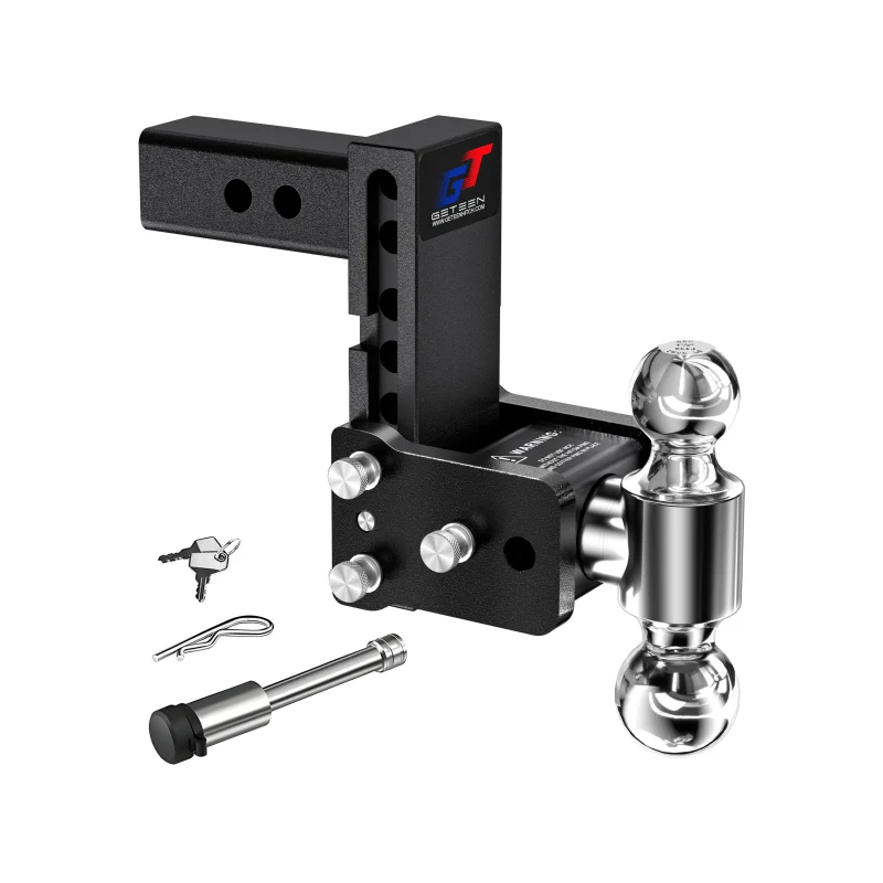 Geteen Adjustable Trailer Hitch for 2″ Receiver, Dual Ball, 5″ Drop/Rise, 10,000 lbs, Aluminum with Lock & Anti-Rattle